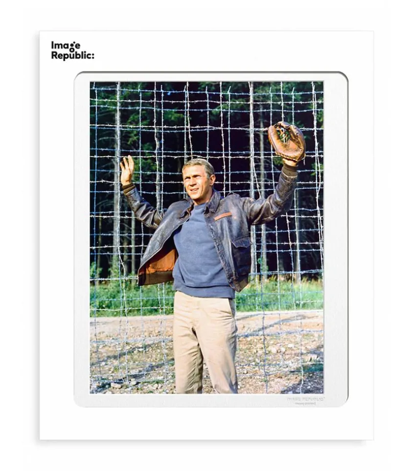 Affiche La Galerie Mcqueen Evasion Au Format 38 X 56 Cm Éditée Par Image Republic. Idéale Pour Égayer Une Pièce, Cette Affiche Dévoile Un Cliché De Steve Mcqueen En Pleine Partie De Baseball.