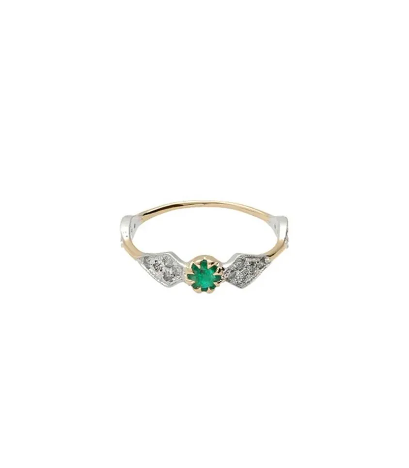 Bague Adèle N°1 Emeraude Signée Pascale Monvoisin. Ce Bijou Bicolore Dévoile Un Sertissage De Diamants Sur Les Parties En Argent Ainsi Qu’Une Émeraude Centrale Retenue Par De L’Or Jaune.