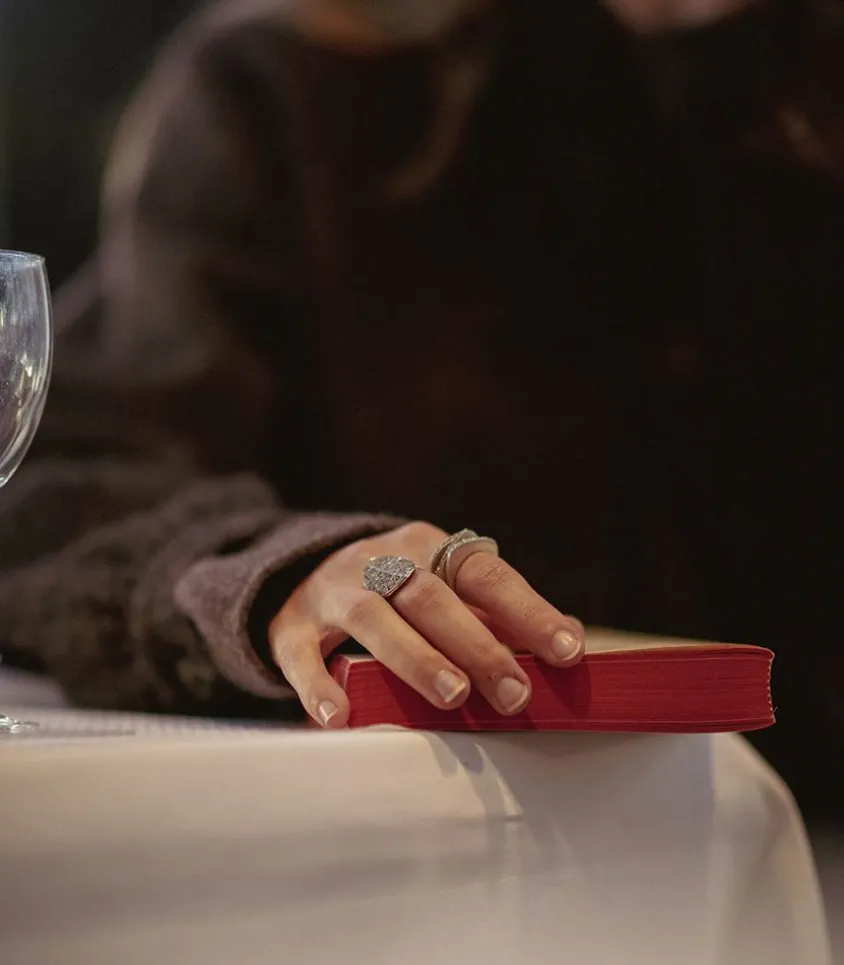 Bague Galet En Email Pail Or De La Marque Lsonge. Une Bague De Forme Plate En Argent 925, Dont La Tranche Avant Est Ornée De Petits Zirconiums Dorés.