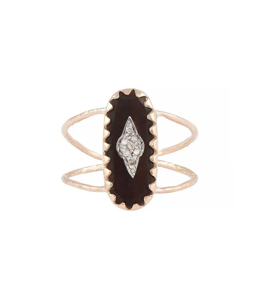 Les Créations De Pascale Monvoisin Sont Brutes Et Raffinées, Ethniques, Et Tendances À La Fois, À L’Image De La Bague Mahé. Ce Bijou Unique Associe Or Rose 9 Carats Dans L’Air Du Temps, Bakélite Noire Moderne Et Diamants Intemporels. Cette Bague Est Livrée Avec Son Certificat D’Authenticité.