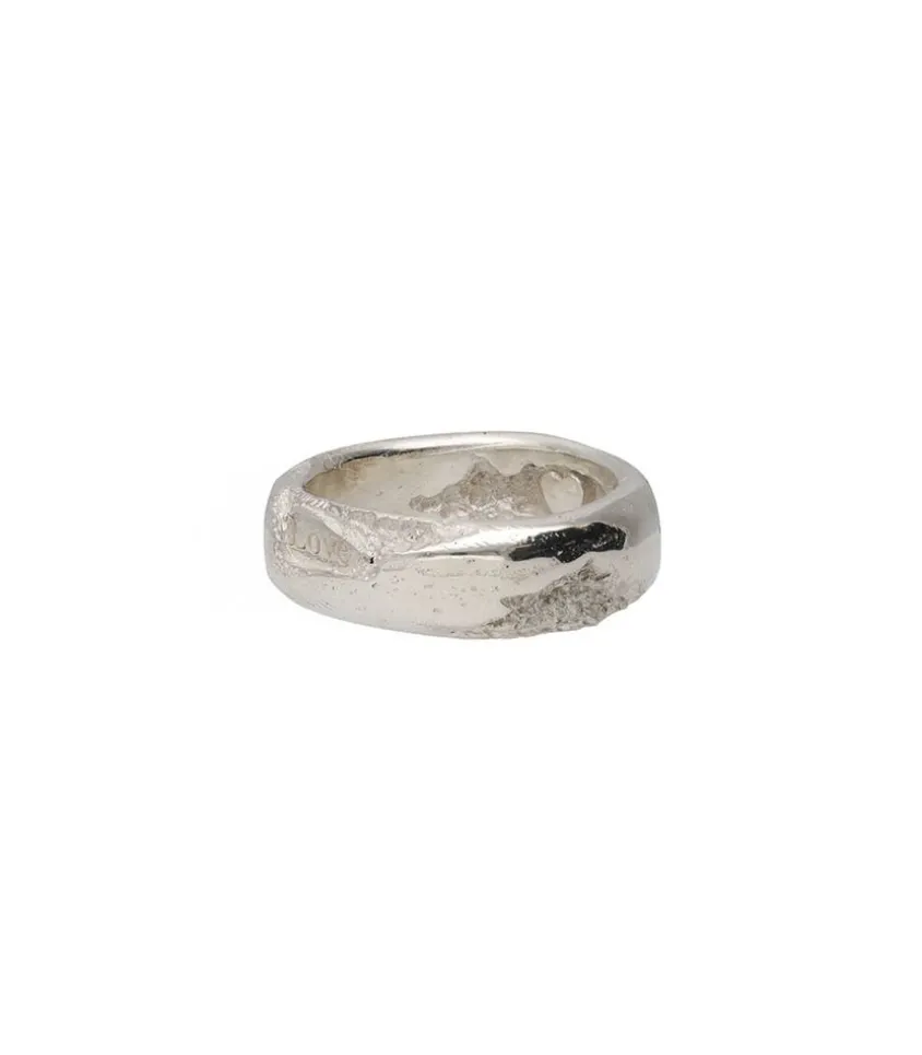 Bague The Dance De La Marque Tó Garal. Cette Élégante Bague En Argent Massif Présente Une Forme Classique D’Anneau, Subtilement Revisitée Par Un Effet Cassé Volontaire Qui Lui Confère Une Touche De Modernité Et D’Originalité. Sur Le Devant De La Bague, Une Délicate Inscription « Love » Est Finement Gravée, Ajoutant Une Dimension Sentimentale Et Romantique.
