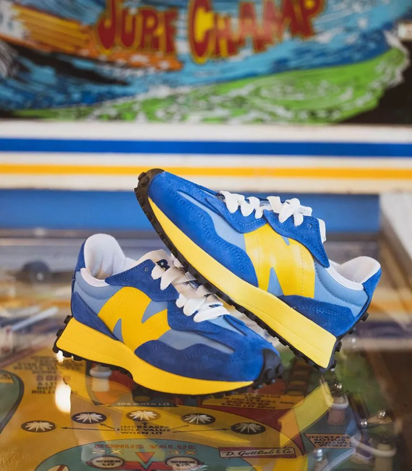 Baskets 327 Warped Essential Marine Blue Par New Balance, Une Paire Moderne Et Urbaine, Interprétation Contemporaine Des Chaussures De Running Des Années 70.