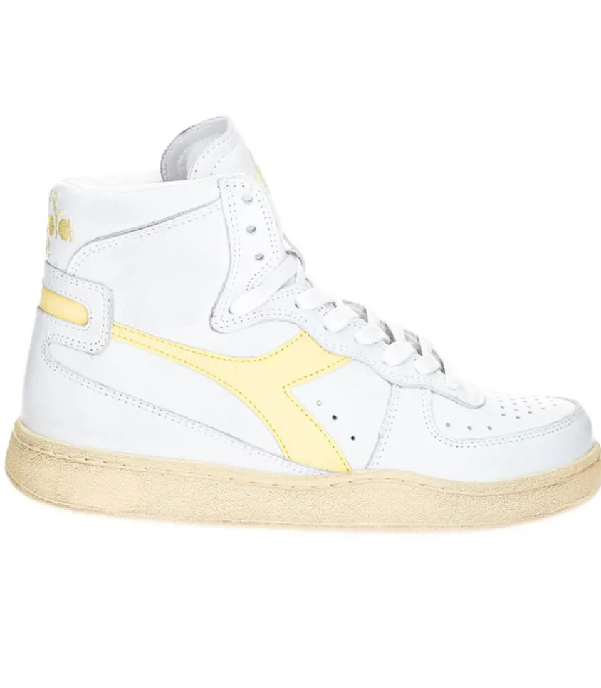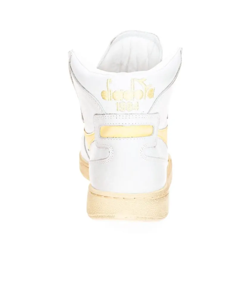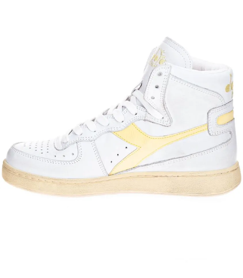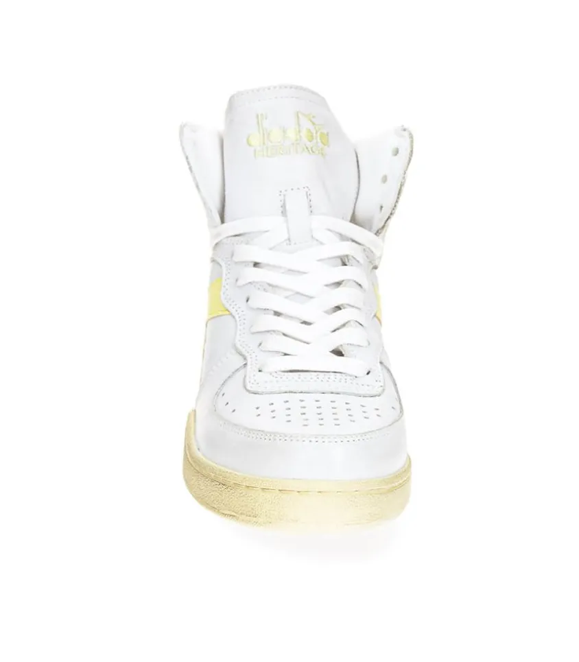 Baskets Heritage Mi Used White/French Vanilla Signées Diadora. Un Modèle Unique Spécialement Conçu Dans Le Cadre De La Sponsorisation De L’Équipe Milano Basket En 1984. Cette Paire À Un Véritable Adn Sportif. Elle À Un Effet Vieilli Spécial Et A Été Fabriqué À Partir De Matières Premium.