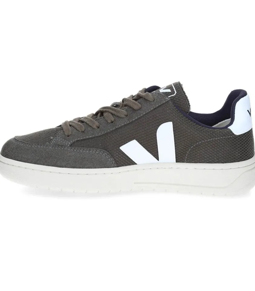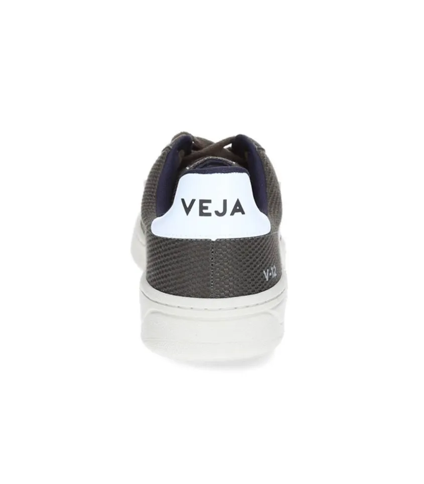 Baskets Pour Homme V-12 B-Mesh Olive White De La Marque Veja, Une Paire Éthique Et Éco-Responsable Reconnaissable À Son Logo V Sur Le Côté.