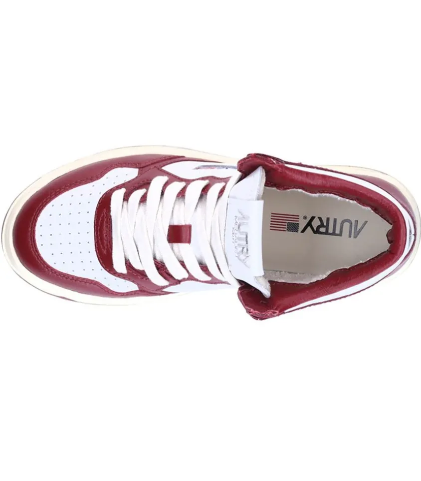 Baskets Medalist Mid Blanc Et Syrah De La Marque Autry. Ce Modèle Apporte À Votre Look Un Côté À La Fois Rétro Et Moderne. Coloris Rouge Intense Idéal Pour L’Automne-Hiver.