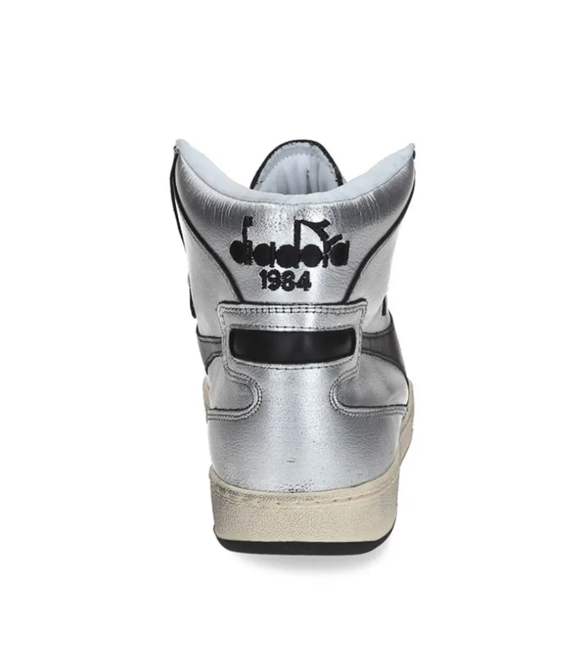 Baskets Mi Silver Used Argento/Nero Signées Diadora. Les Baskets Mi Silver Used Argento/Nero Arborent Un Style Remarquable Avec Leur Cuir Premium Lamé À L’Effet Métallisé Et Leurs Détails En Cuir Pleine Fleur. Cette Combinaison De Matériaux De Haute Qualité Confère À Ces Baskets Montantes Un Aspect Luxueux Et Tendance. Leur Couleur Argentée Et Noire Apporte Une Touche D’Élégance Audacieuse À N’Importe Quelle Tenue, Tandis Que Leur Silhouette Montante Ajoute Une Note De Caractère. Parfaites Pour Ceux Qui Recherchent Une Chaussure Qui Se Démarque, Ces Baskets Mi Silver Used Ajoutent Une Dose De Style Contemporain À Votre Look.