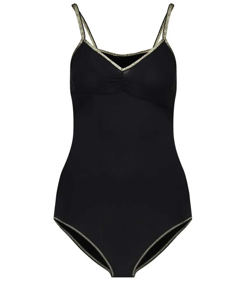 Body Bretelles Georgia Noir De La Marque De Lingerie La Nouvelle, À La Douce Et Fine Matière Très Confortable Et Stretch. Il Sublime Toutes Les Morphologies Grâce À Sa Forme De Bonnets En Triangle, Ses Fronces À L’Entre-Poitrine Et Son Petit Liseré Lurex Doré Lumineux.