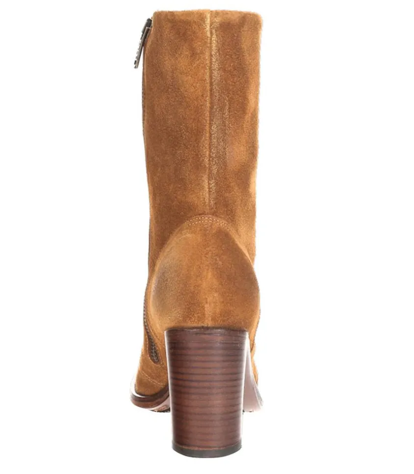Boots Kval Scamo Vinsanto De La Marque King Tartufoli, Dont La Tige En Daim Caramel Réchauffe Facilement Vos Looks Du Quotidien. Leur Talon Fin Et Haut Élance La Silhouette Et Offre Un Côté Chic. Coupe Façon Chaussette Afin De Faciliter L’Enfilement Et Découpes Élégantes Au Talon Et Sur Le Dessus Du Pied Qui Permettent De L’Afiner Visuellement. Talon En Bois.