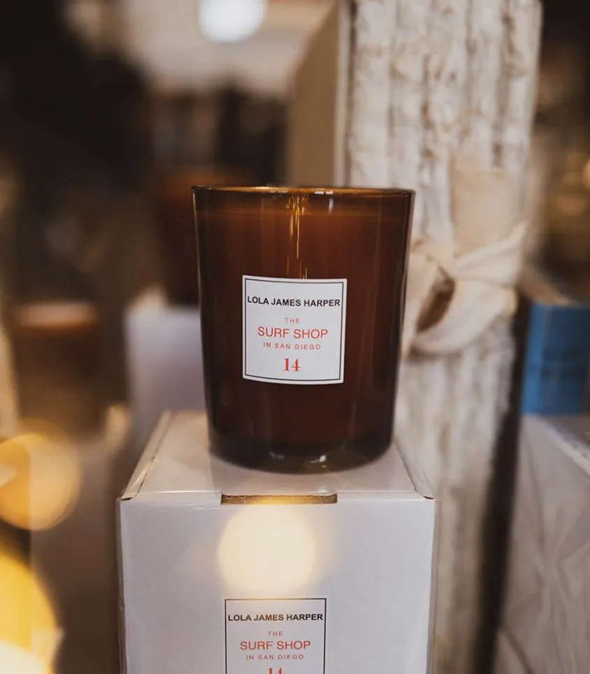 Bougie #14 The Surf Shop 190G De La Marque Lola James Harper, Fabriquée En France À Partir De Cire Végétale Et D’Huiles Essentielles Rares. Lola James Harper Créé Des Fragrances Conçues Pour Évoquer Un Lieu Et Son Atmosphère Précise.