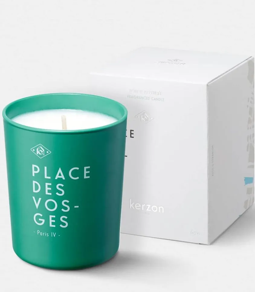 Bougie Parfumée Place Des Vosges De La Marque Kerzon, Un Accord Parfait Entre Une Cire Naturelle, Une Mèche En Pur Coton Tressé Et Un Parfum Subtil. Cette Bougie Présente Un Assemblage Olfactif De Rose Et Géranium.