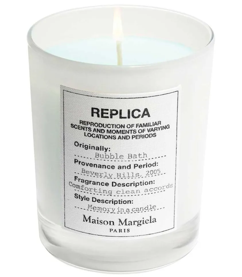 Bougie Parfumée Replica Bubble Math De La Maison Margiela, Qui Évoque Le Souvenir D’Un Bon Bain Chaud Et Moussant, Plonger Dans L’Eau Chaude Parfumée Et S’Offrir Un Moment De Détente. Un Délicieux Moment De Bien Être Accentué De Notes Florales, Boisées Et Musquées.