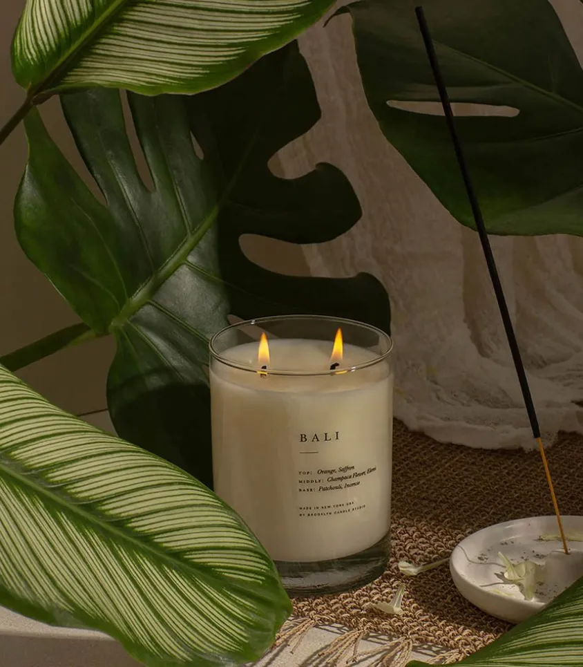 Bougie Végétale Parfumée Signée Brooklyn Candle, Issue De La Collection Escapist, Des Bougies Inspirées De Voyages. Cette Bougie Escapist Bali Nous Plonge Tout Droit Sur Cette Île Où Les Énergies Se Développent. On Un Arôme Apaisant D’Encens De Frangipanier, Comme S’Échappant D’Un Temple Local, Mêlé À Des Pétales De Champaca Qui Tombent Du Ciel.