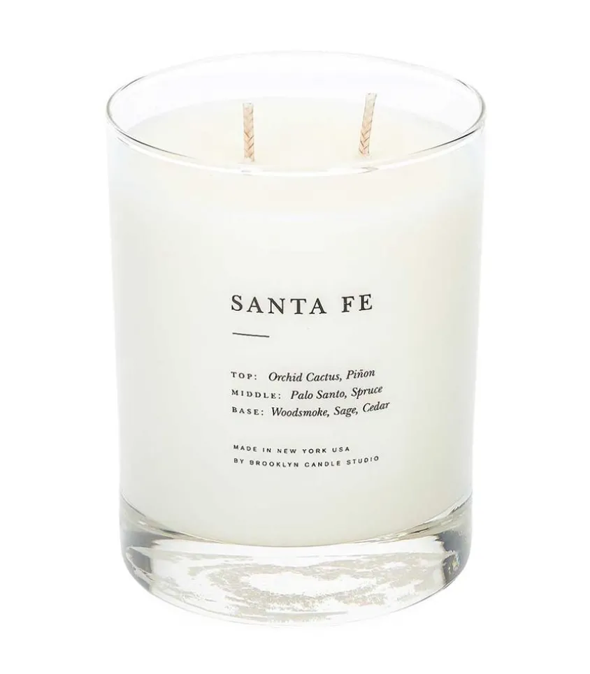 Bougie Végétale Parfumée Signée Brooklyn Candle, Issue De La Collection Escapist, Des Bougies Inspirées De Voyages. Parfum Santa Fe Inspiré Par Un Voyage Spontané De Février Dans Cette Destination Mexicaine. Un Parfum Terreux Et Apaisant, Dont Les Arômes De Cactus D’Orchidée, De Sauge Sauvage, De Genévrier Et De Piñon Évoquent Des Journées D’Exploration Du Paysage Désertique Et Des Nuits Réchauffées Par La Cheminée Kiva.
