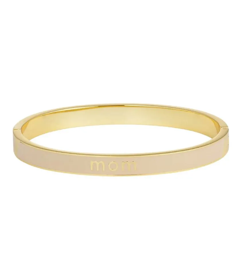 Bracelet Vip Word Mom Beige, Un Jonc Élégant Avec Sa Teinte Beige Et Dorée. Conçu En Acier Inoxydable, Il Traverse Les Épreuves Du Temps Pour Rester Brillant Le Plus Longtemps. Il Sera Parfait À Offrir À Un Proche Pour La Fête Des Mères Par Exemple.