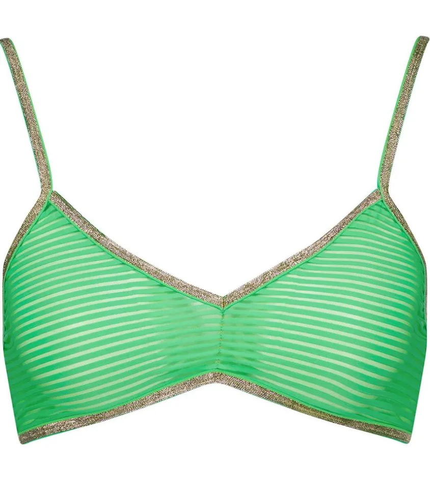 Brassière Georgia Green Stripes De La Marque La Nouvelle. Une Brassière Indispensable Qui Allie Confort Absolu Et Style Intemporel Des Années 70. Choisissez Ce Modèle Au Coloris « Green Stripes » Qui Se Glisse Discrètement Sous N’Importe Quelle Chemise, Ajoutant Ainsi Une Touche De Romantisme À Votre Tenue.