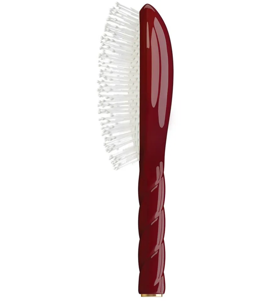 Brosse N.04 La Miracle Démêlante & Massante De Couleur Cerise De La Bonne Brosse. Grâce À Ses Poils En Nylon Irréguliers Implantés À La Main, Cette Brosse Procure Un Massage Et Un Démêlage Incomparable Du Cuir Chevelu. Les Cheveux Repoussent Ainsi Plus Forts Et En Meilleur Santé, Et Le Cuir Chevelu Est Mieux Nourrit.