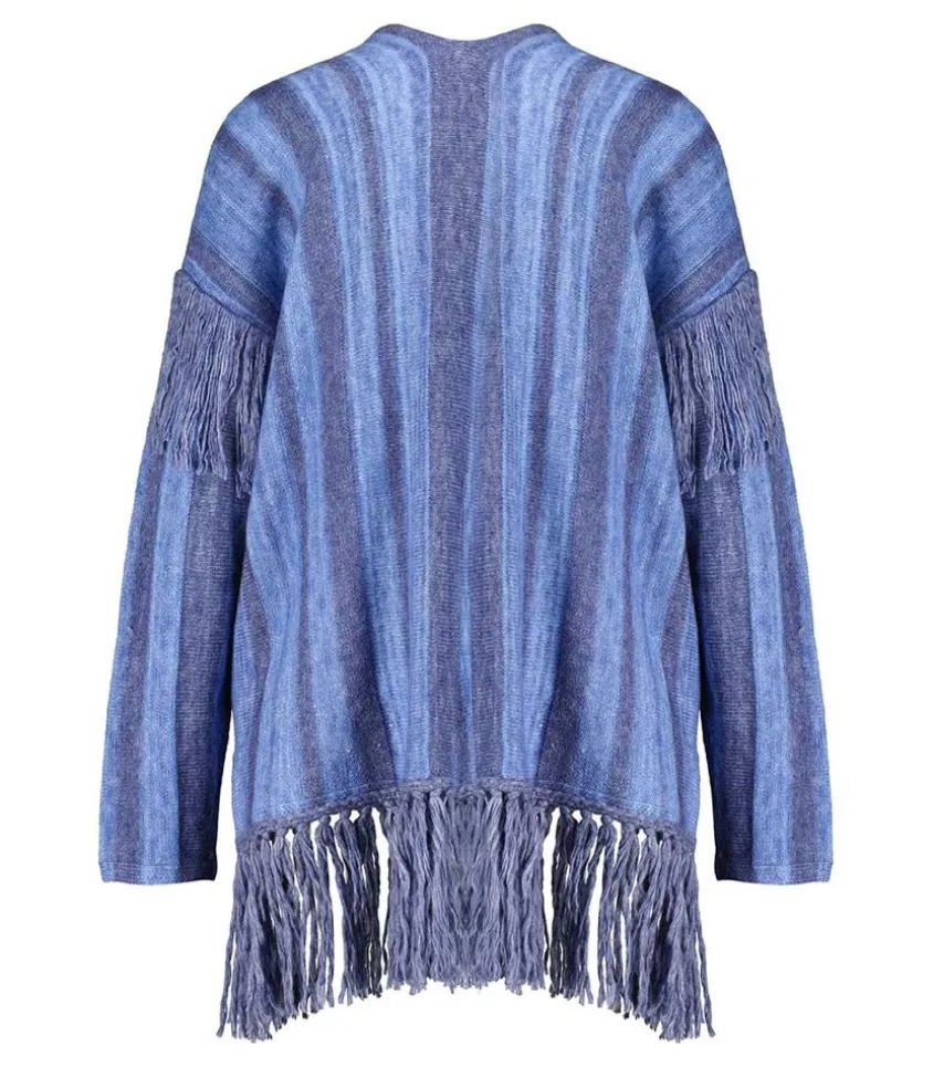 Sa Confection Raisonnée À Base De Coton Bio, De Laine Mérinos Et De Cachemire Recyclé Ajoute À Sa Valeur. Les Longues Franges En Fintion Sur Le Bas Et Aux Emmanchures Appuient Son Côté Hippie.