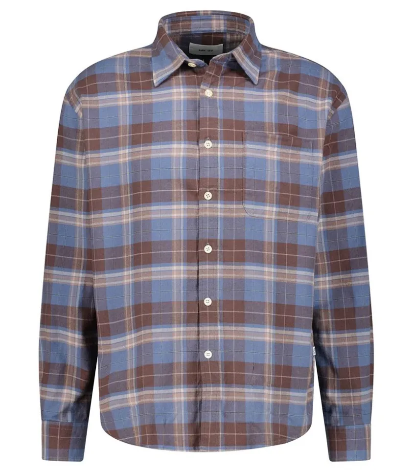 Chemise Deon Brown De La Marque Nn07. Motif À Carreaux Très Tendance Que L’On Porte Ouvert Au-Dessus D’Un Tee-Shirt Simple Ou Complètement Fermé Comme Une Chemise Traditionnelle. Idéal Pour Vos Looks D’Automne / Hiver. Coloris Contrasté, Bleu Et Marron.