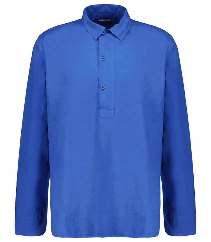 Chemise Pour Homme Paolo Sushi Babylon De La Marque Labo.Art, En 100% Coton Très Léger Et Fin, Travaillé Avec Un Aspect Peau De Pêche. Avec Sa Teinte Bleu Roi, Elle Est Conçue Dans Un Aspect Bleu De Travail, Qui S’Accordera Parfaitement Avec Un Pantalon En Lin Naturel Pour Un Esprit Décontracté.