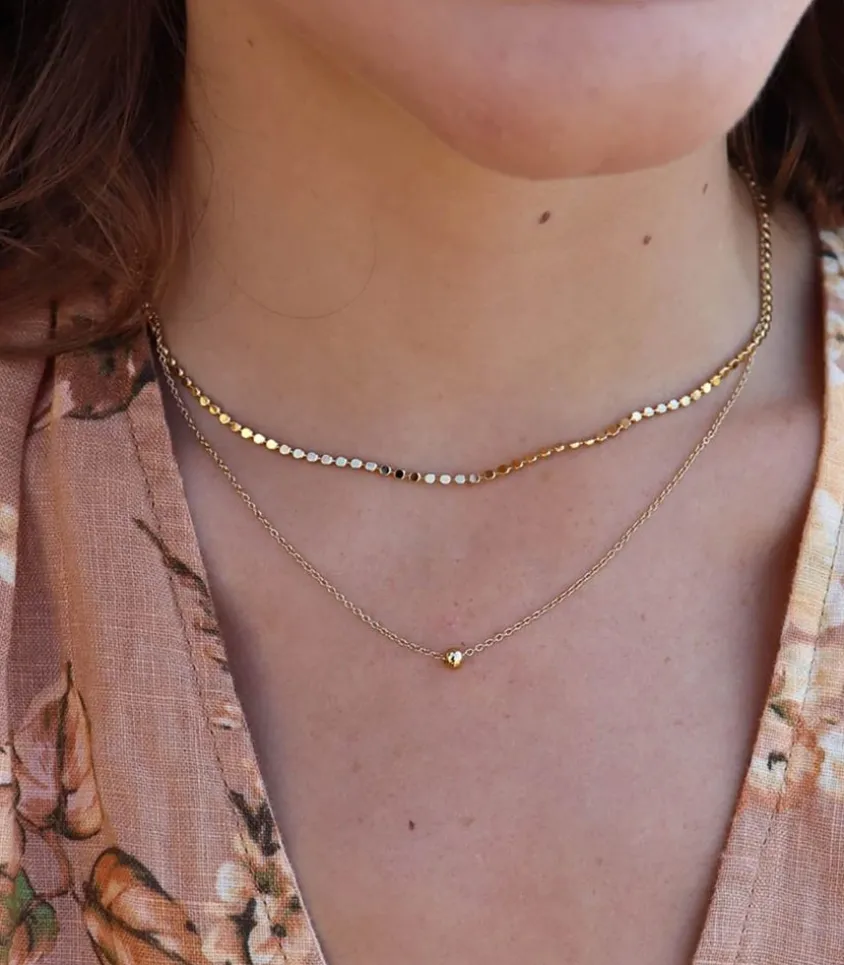 Collier Ameda Doré De La Marque Waekura. Ce Collier Unique Se Compose De Deux Parties Distinctes : Un Collier Perla, Un Classique Intemporel Qui Évoque La Grâce Et L’Élégance, Et Une Fine Chaîne Ornée D’Une Bille Dorée En Plaqué Or 3 Microns, Ajoutant Une Touche De Sophistication Moderne. L’Association Harmonieuse De Ces Deux Éléments Crée Un Bijou D’Une Beauté Incomparable, Parfait Pour Se Faire Plaisir Ou Pour Offrir À Un Être Cher.