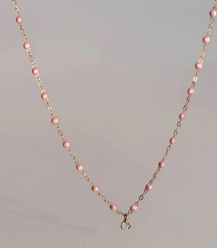 Collier Gigi Suprême, Un Nouveau Modèle Des Collections De Colliers Gigi Clozeau, Toujours Décliné En Perles De Résine Colorées Et Surmonté D’Un Diamant. Base En Or Jaune Et Longueur 42 Cm.