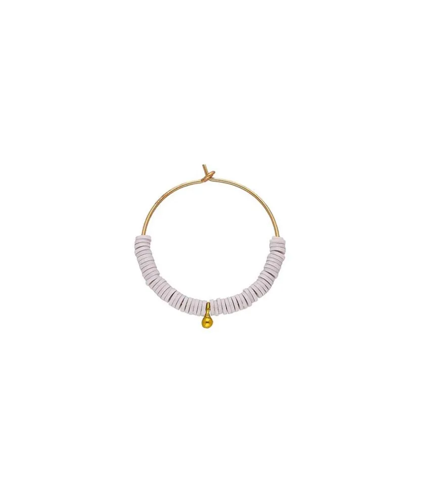 Inspirée De Ses Nombreux Voyages Aux Quatre Coins Du Monde, Aurélia Maës Propose Cette Créole Greta 3 Mm Maison Mönik. Elle Se Caractérise Par De Multiples Perles Blanches En Vinyle Recyclé Du Ghana Et Un Petit Grelot En Plaqué Or 24 Carats.