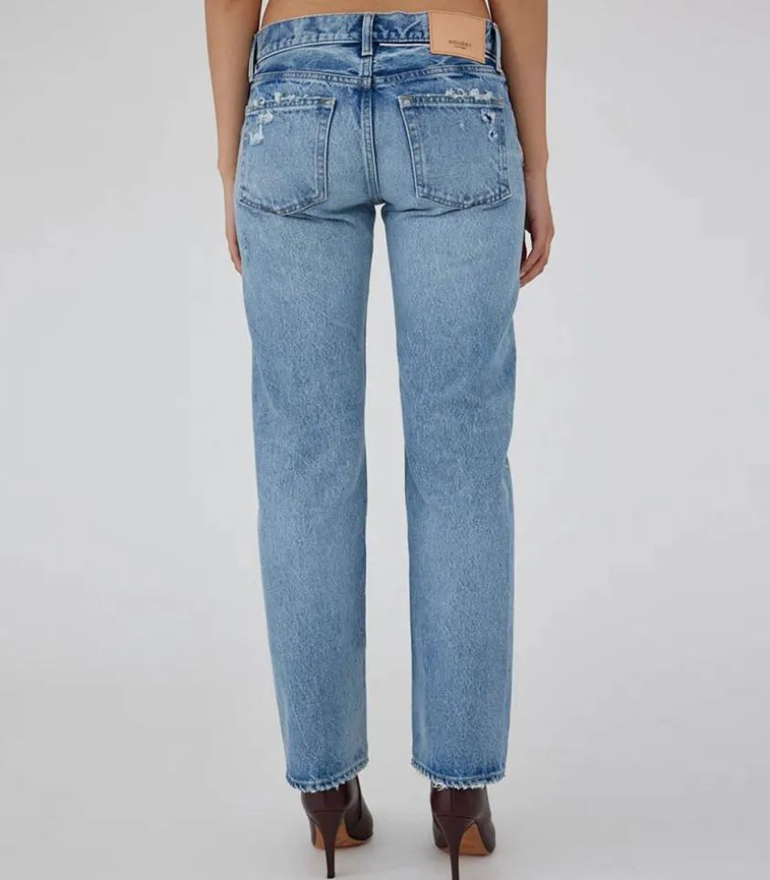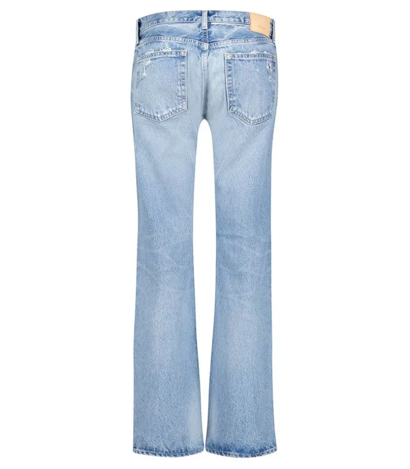 Jean Bleu Taille Basse À La Coupe Droite. Modèle A L’Effet Usé Pour Apporter Une Touche Vintage À Votre Look. Une Coupe Très Tendance Qui Allongera Votre Silhouette.