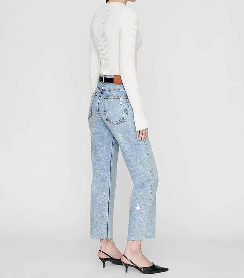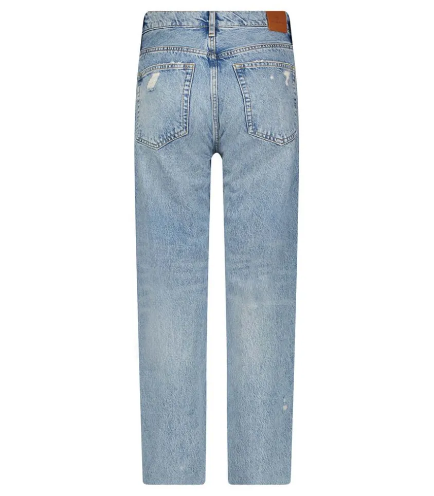 Jean Gavin Blue Reservoir Signé Anine Bing, Une Jean Boyfriend Moderne Conçu En Denim Clair Légèrement Délavé Et Rigide. Ce Modèle S’Adapte À Tous Les Styles Et Toutes Les Saisons, C’Est La Pièce Indispensable Du Vestiaire Féminin.