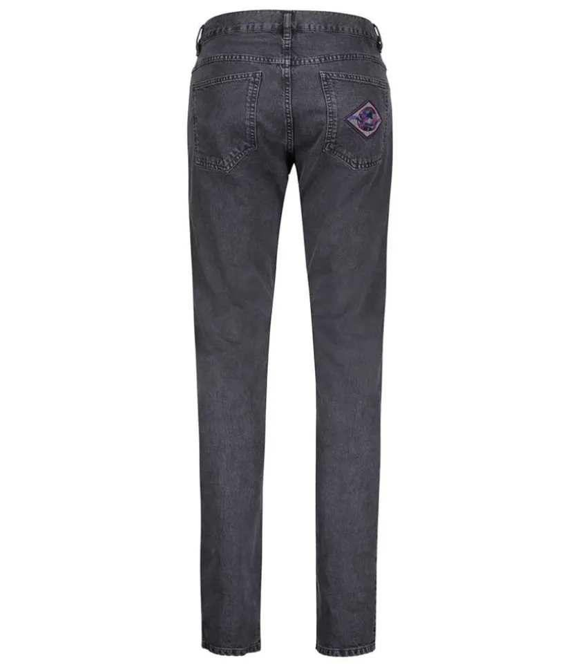 Jean Isabel Marant Homme, Modèle Jack En Denim Gris À Effet Délavé. Un Jean Droit Doté Des Traditionnels 5 Passants De Ceinture, Avec Des Détails Métalliques. Braguette Zippée. Sur La Poche Arrière Droite, Un Patch Rétro Reprend Le Texte « Isabel Marant World ». Un Jean Usé Et Fini De Façon Artisanale.
