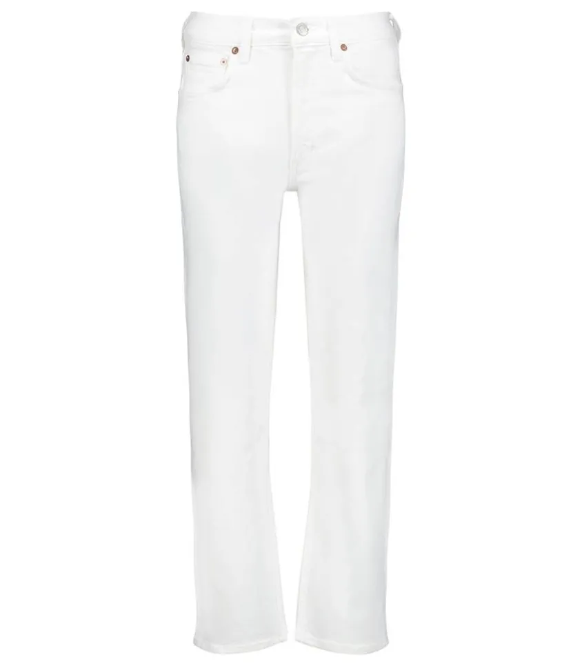 Jean Kye Mid Rise Straight Crop Stretch De La Marque Agolde, Un Élégant Jean Droit Blanc Idéal Pour L’Été. On L’Imagine Avec Une Paire De Sandales Et Une Blouse Fluide Pour Un Look Chic Et Estival.