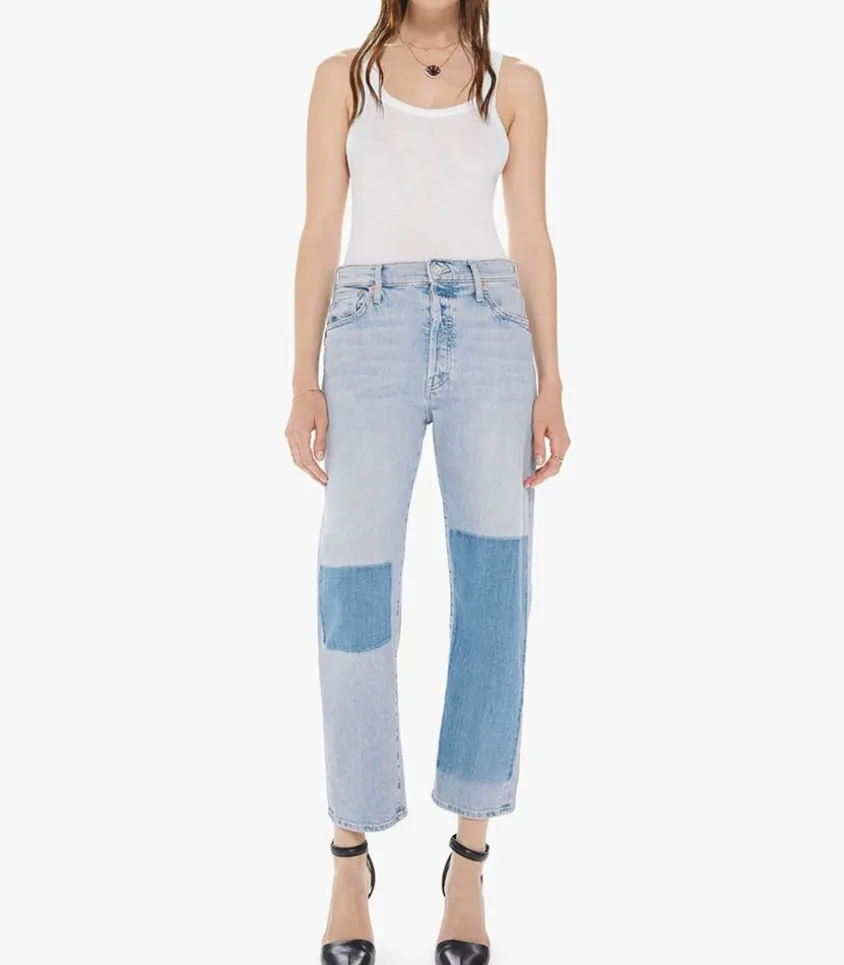 Dernier Né Des Collections Denim Mother, Le Jean The Ditcher Crop Pre- Party Se Distingue Par Son Délavage Bleu Clair Contrastré Par Patch En Denim Plus Foncé. Made In Los Angeles, Ce Jean Court Se Porte Au Quotidien.
