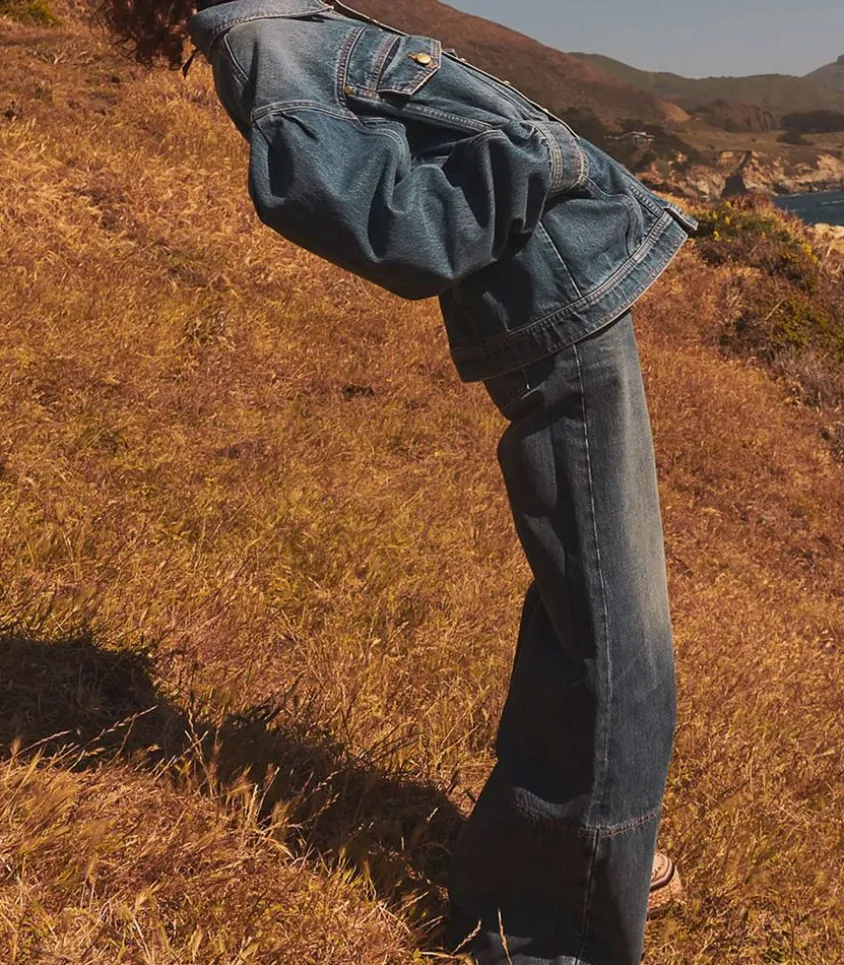 Jean The Margot Signé Ulla Johnson, Un Denim À Jambe Large Fabriqué À La Main Aux États-Unis Dans Un Coloris Délavé Danube Dark Indigo. On Le Porte Avec Un Pull Ou Un Chemisier Noir, Accompagné De Votre Paire De Sneakers Favorite.