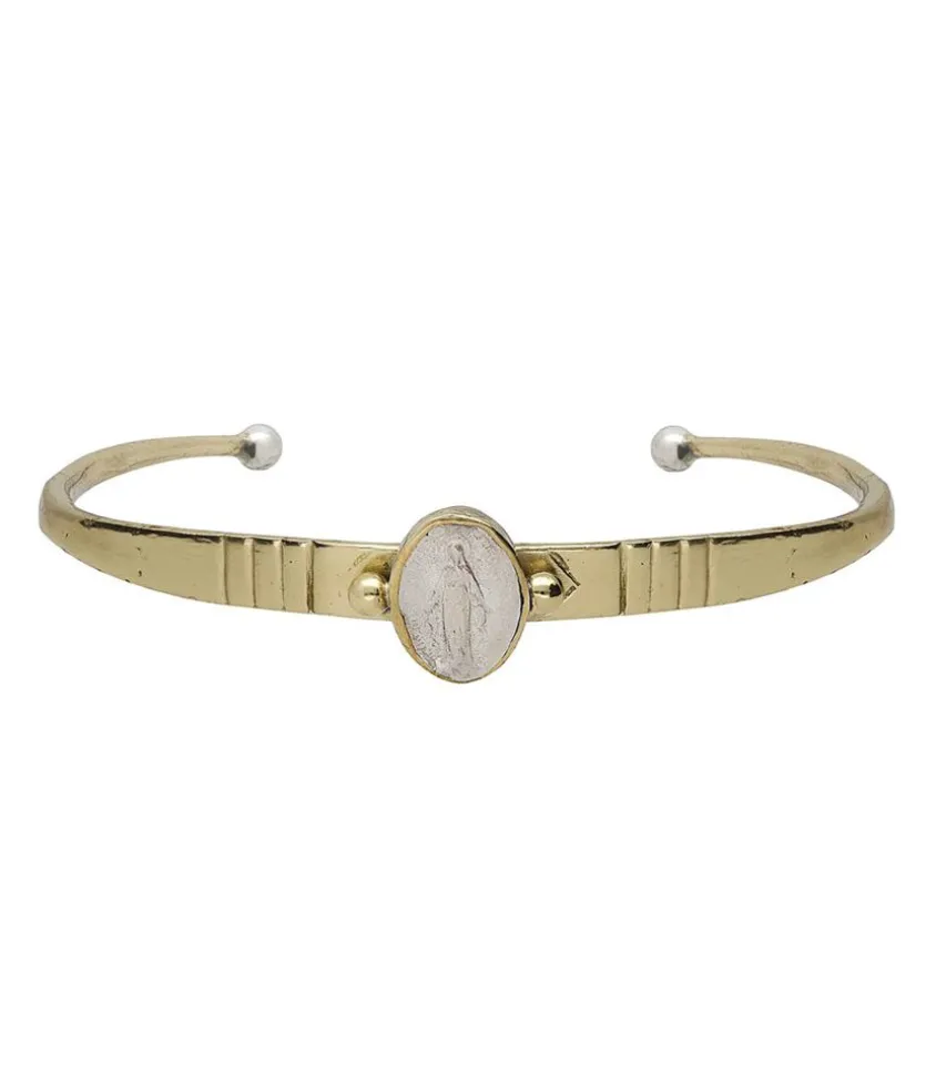 Le Jonc Soudan Miraculous Doré Est Une Pièce De Joaillerie Exquise De La Marque Arkeology Paris, Conçue Pour Apporter Une Touche De Grâce Et De Spiritualité À Votre Style. Au Centre Du Jonc Se Trouve Une Représentation Délicate De La Vierge Marie, Symbole De Pureté Et De Protection.