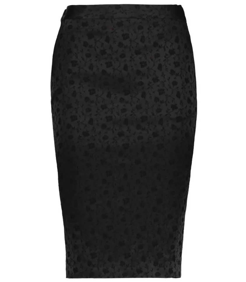 Acérée, La Jupe Crayon Est Une Pièce Emblématique Du Vestiaire 6397. La Marque New-Yorkaise Réhabilite Le Noir, Couleur Mystérieuse Et Personnalisable À Souhait, Avec Cette Jupe Jacquard Rehaussée De Petites Fleurs Vintage Ton Sur Ton.
