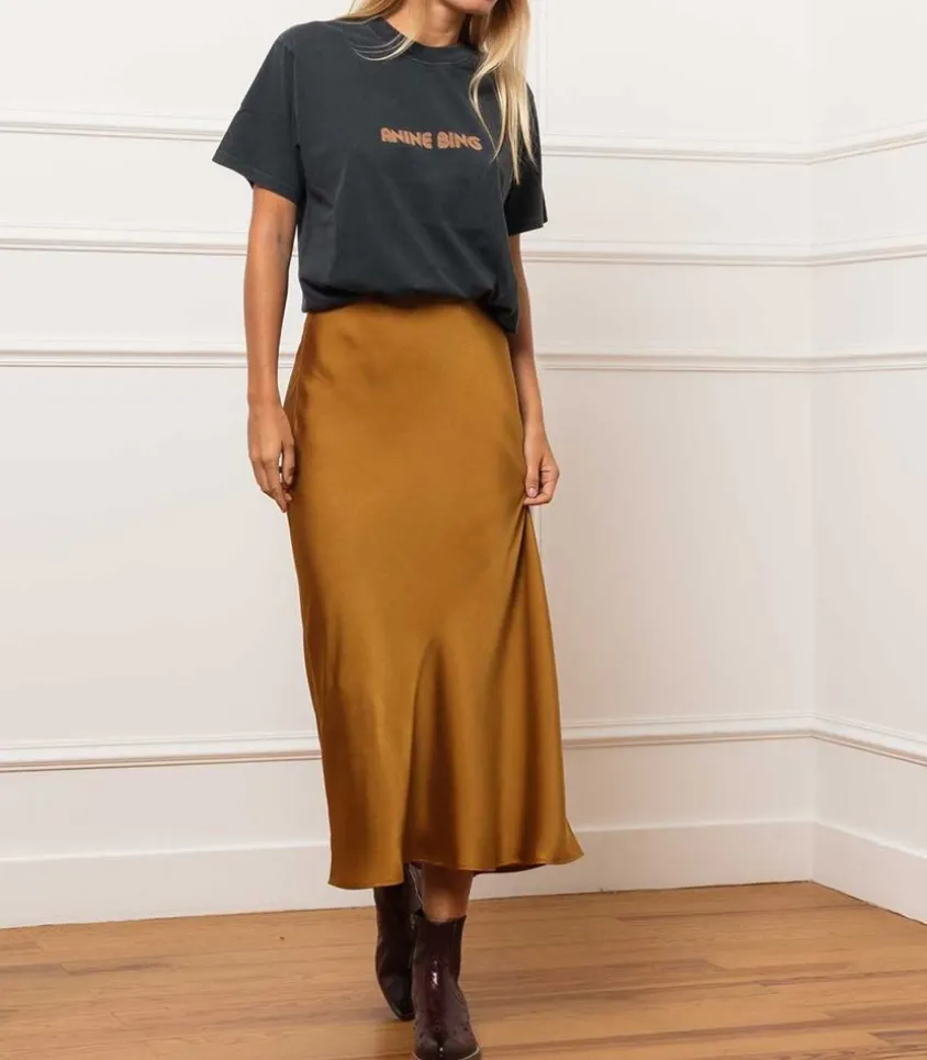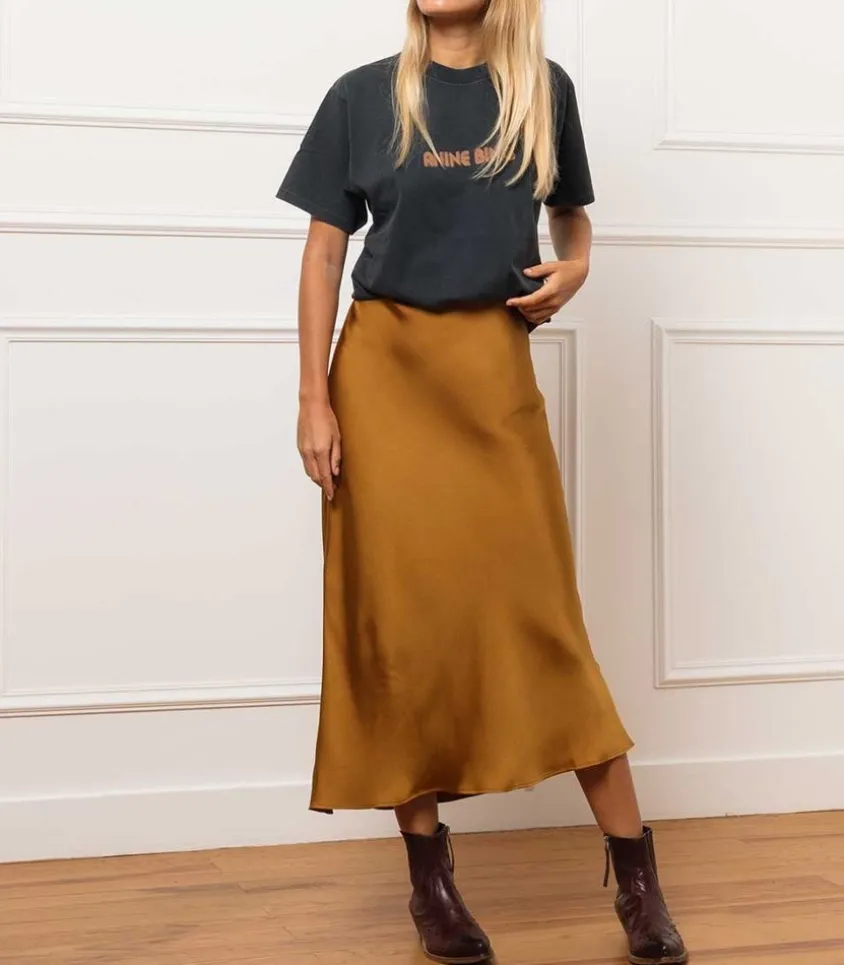 La Jupe Parfaite : Longue, Satinée, Au Toucher Soyeux Qui Fait Qu’On En Oublierai Presque Que L’On Porte Un Vêtement. En Plus D’Incarner Le Confort Absolu, Cette Jupe Bar Anine Bing Met En Valeur La Silhouette Et Apporte La Touche Chic.