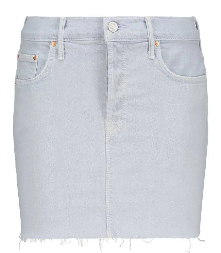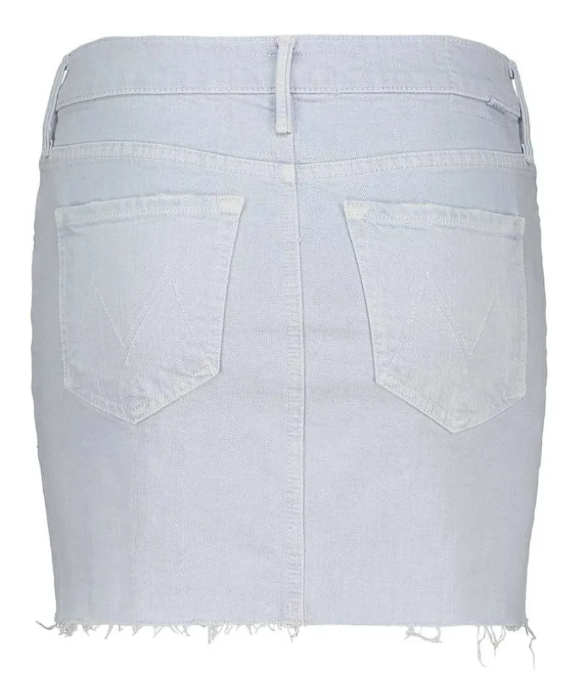 Mother Signe Un Must-Have Avec Cette Jupe The Vagabond Mini Fray. Ce Modèle En Denim De Haute Qualité Tombe Dans Une Coupe Ajustée À 5 Poches Et Au Bas Souligné Par Des Bords Francs.