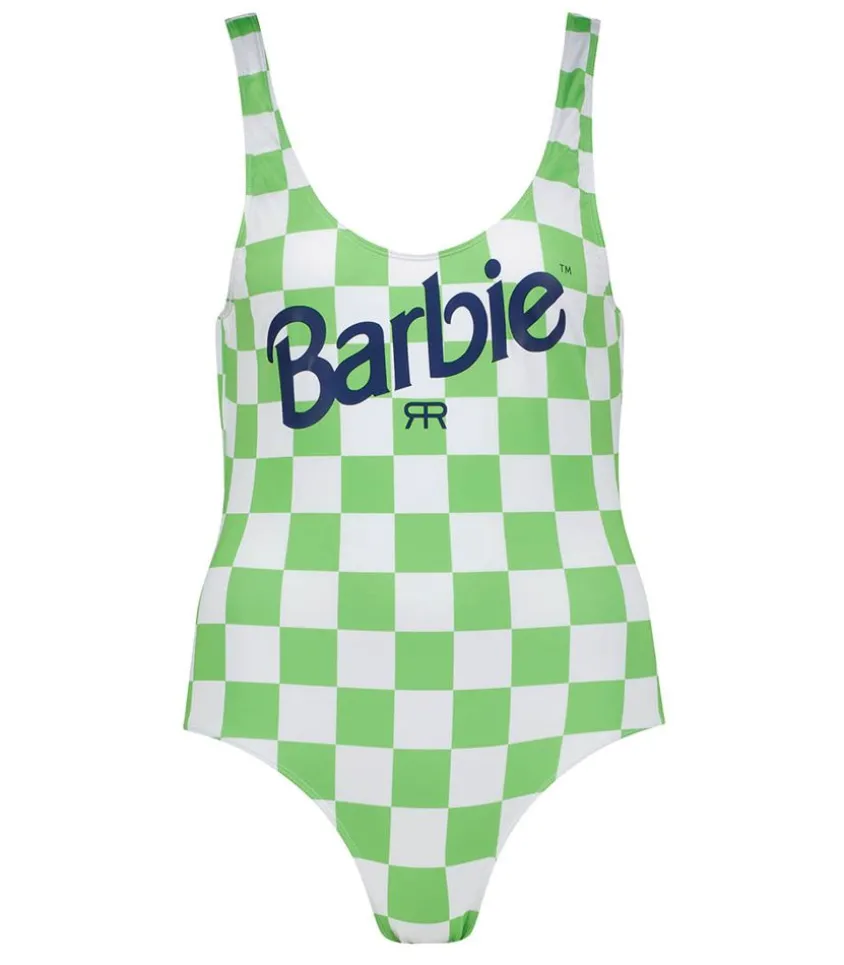 Maillot De Bain Une Pièce Issue De La Toute Nouvelle Collab Roseanna X Barbie ! Il Adopte La Forme Classique Et Iconique Pamela Des Maillots Roseanna : Une Forme Qui Épouse Le Corps Et Qui Offre Un Joli Dos Plongeant. L’Encolure Ronde Permet Une Belle Mise En Valeur De La Poitrine. Impression Larges Carreaux Blancs Et Verts, Et Logo Noir « Barbie » Devant.