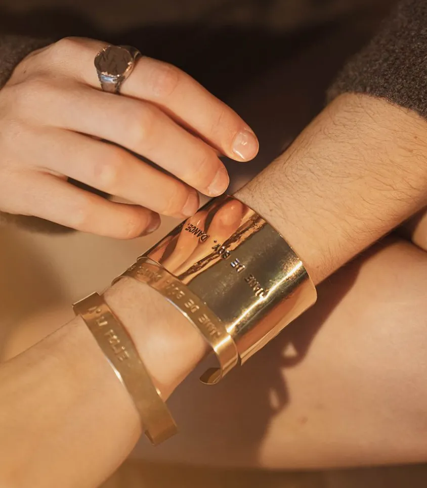 Résultat De L’Artisanat Précieux, Ce Bracelet Manchette Gravé « Jane De Boy. Dance. Enjoy » De L’Atelier 7|12 Séduit Par Sa Forme Minimaliste Et Ses Inscriptions Comme Une Ode À La Joie. Habillez Votre Poignet Avec Cette Création Promesse D’Un Style Élégant Et Raffiné.