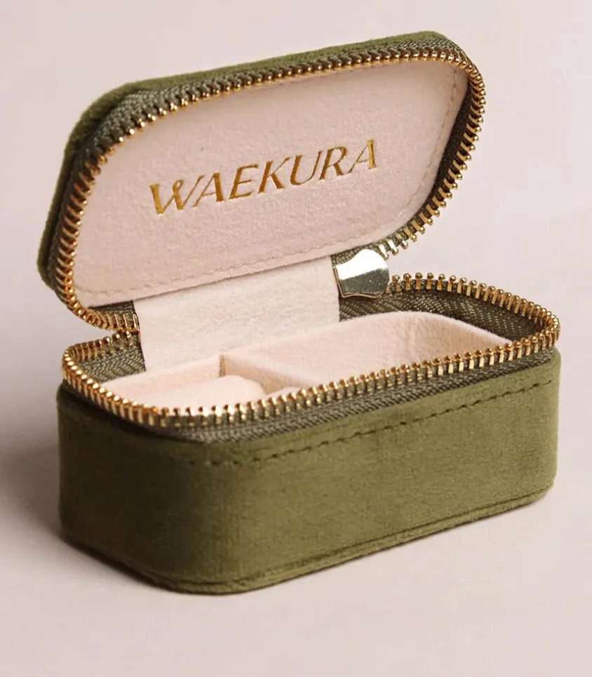 Mini Trousse Olive De La Marque Waekura. La Mini Trousse Olive De La Marque Waekura Est L’Accessoire Parfait Pour Les Amateurs De Bijoux En Déplacement. Pratique Et Élégante, Cette Trousse Vous Permet De Ranger Et De Protéger Vos Précieux Bijoux Tout En Restant Organisé.