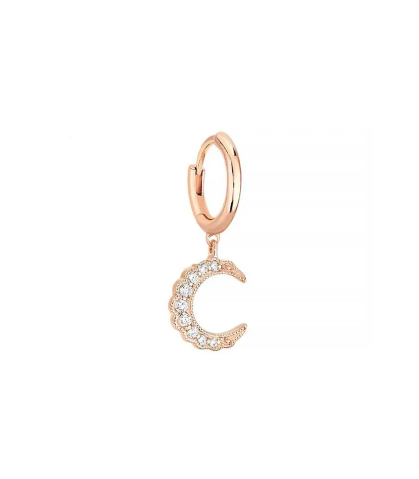 Stone Paris A Connu Le Succès Avec Ses Dormeuses, Qu’Elle Modernise Sous La Forme De Cette Mini Créole Moonlight Or Rose. Un Croissant De Lune Serti De 9 Diamants Blancs Est Suspendu Avec Finesse À Un Anneau De 0,8 Cm De Diamètre.