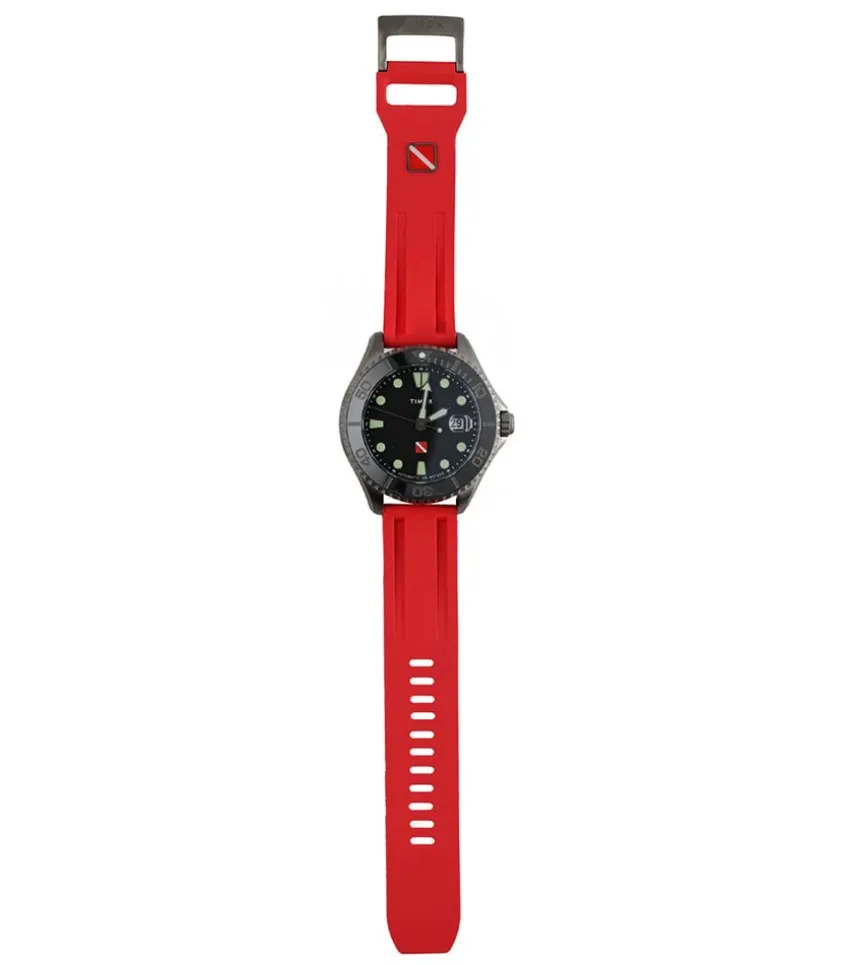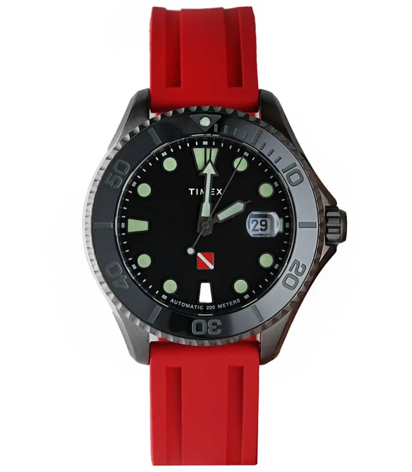 Montre Automatique Tiburon En Titane Cadran Noir Et Bracelet Rouge De La Marque Timex. Un Modèle Masculin Au Look Sports-Wear. Apportez Une Touche De Couleur Grâce À Son Bracelet Rouge En Silicone.