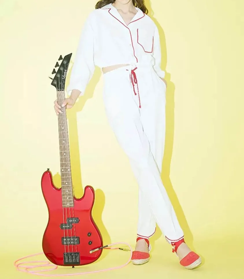 Pantalon Contemporary Popline Blanc De La Marque Forte Forte, Une Revisite Du Pantalon De Pyjama Blanc Classique À La Coupe Carotte, Décoré D’Un Galon Rouge Sur Les Cheville Et D’Un Lien De Serrage De La Même Couleur.