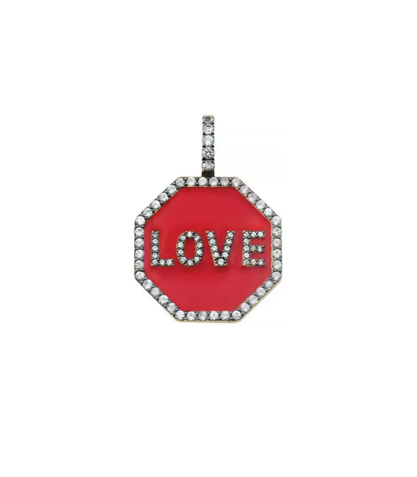 Conçue En Or Jaune Et En Émail Rouge, La Médaille Héxagonale Love Signée Feidt Paris Est Sertie De 82 Saphirs Blancs Sur Les Contours Et Sur L’Inscription « Love », Apportant Ainsi Du Relief À Ce Profond Coloris.