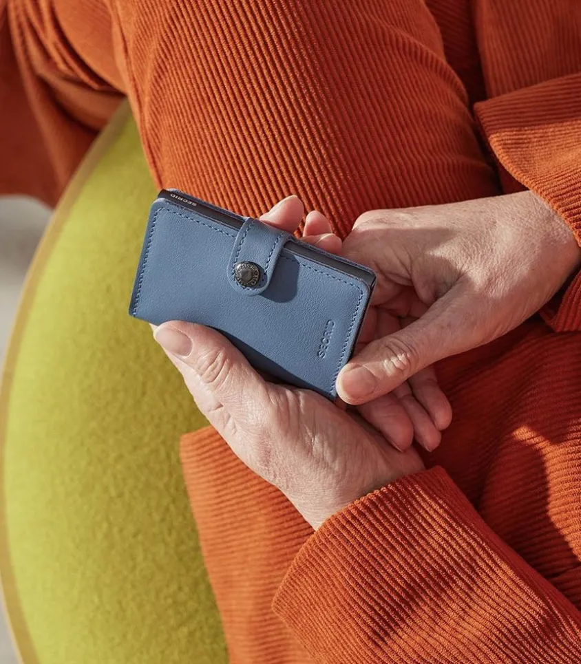 Porte-Carte Miniwallet Original Ice Blue De La Marque Secrid, Un Accessoire De Maroquinerie Pratique Et Élégant Qui Se Glisse Facilement Dans La Poche. Une Nouvelle Teinte Bleue Jean Élégante Et Intemporelle Qui Va Avec Tout. Sa Fonction Cardprotector En Aluminium Permet De Protéger Les Cartes Des Vols De Données Et Des Pliures.