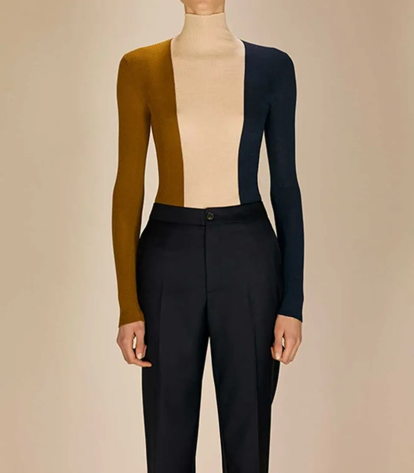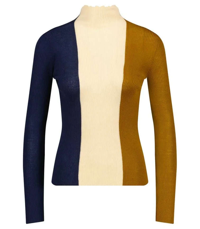 Pull Dolcevita Intarsio De La Marque Roberto Collina. A La Fois Intemporel Grâce À Sa Laine Mérinos Et Original Avec Son Coloris Tricolore, Ce Modèle Que L’On Porte Seul Ou Sous Une Veste De Blazer Légèrement Oversized Offre Confort Et Style. Voir La Taille Du Mannequin