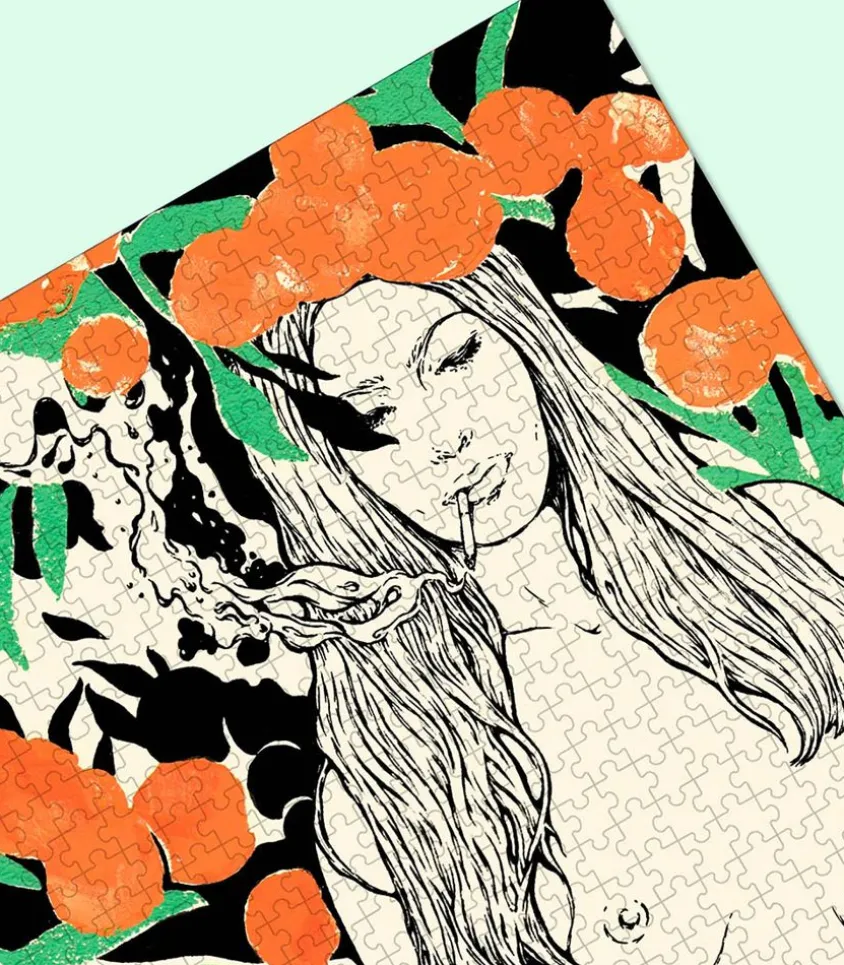 Puzzle Amoureuse By Eté 1981 De La Marque Piece & Love. Ce Puzzle Offre Une Immersion Dans L’Univers Artistique De Delphine Cauly, Célèbre Illustratrice Française. Son Style Délicat Et Reconnaissable, Caractérisé Par Des Traits Fins Et Précis, Se Dévoile À Travers Cette Représentation Captivante D’Une Femme. Les Couleurs Dominantes, Mêlant Le Beige, Le Noir, Le Vert Et L’Orange, Ajoutent Une Dimension Audacieuse Et Harmonieuse À Cette Œuvre Artistique À Assembler.