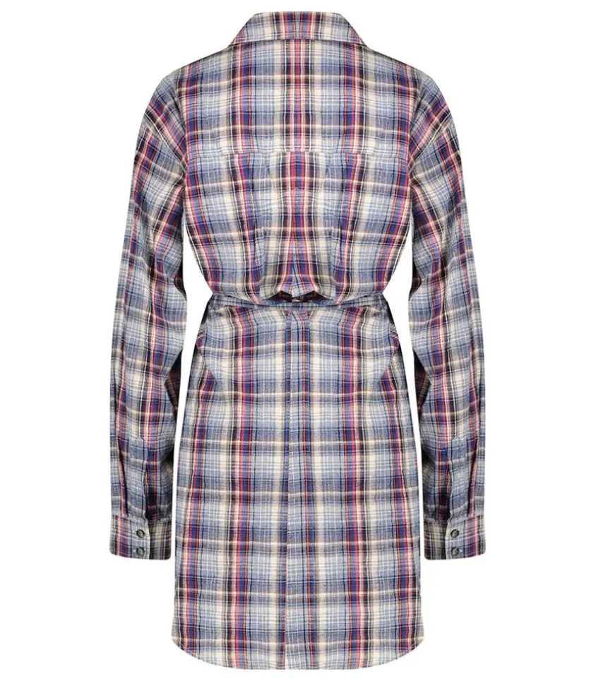 Robe Liliane Bleu Par Marant Étoile, Pensée Comme Une Chemise À Carreaux Longue Qui Offre Une Allure Preppy Et Casual.