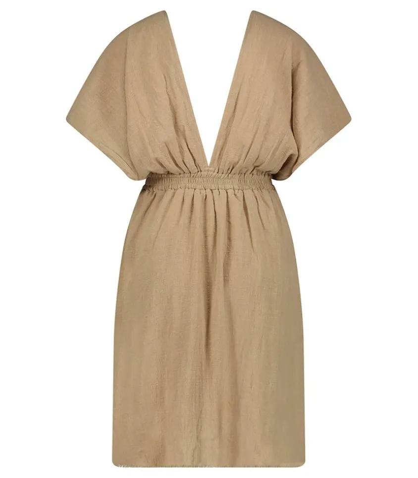 La Robe Courte Empire Caffe Latte De La Marque Maison Saint Julien Incarne L’Élégance Décontractée Avec Son Style Empire Et Ses Détails Sophistiqués. Cette Robe Courte Est Parfaite Pour Les Journées Chaudes Grâce À Son Col Et Son Dos En V Qui Ajoutent Une Touche De Féminité. Les Manches Chauve-Souris Offrent Un Style Décontracté, Tandis Que La Taille Haute Sous La Poitrine Élastiquée Assure Un Ajustement Flatteur Et Confortable. Une Ceinture Longue Amovible Avec Une Finition Brute Permet De Personnaliser Le Look. Dans Une Teinte Café Latte Élégante, Cette Robe Est Idéale Pour Les Occasions Estivales Décontractées, Alliant Style Et Confort Avec Une Touche De Sophistication.