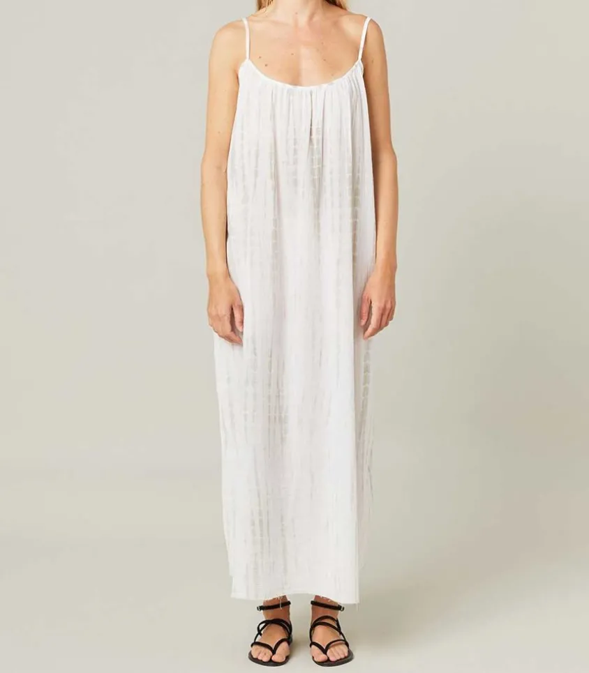 On Craque Pour La Version Tie & Dye De La Robe Plissée Palm Beach Maison Saint Julien, Déclinée Dans Une Teinture Vert Aquatique Qui Sera Du Plus Bel Effet En Ville Comme Au Bord De L’Eau.