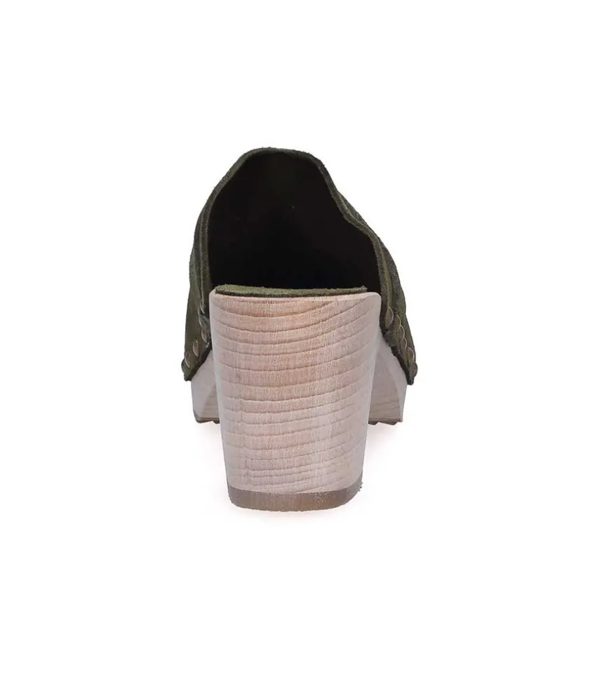 Les Sabots Kety En Daim Kaki Bosabo Nous Envoûtent Par Leur Design À La Fois Mode Et Traditionnel. La Maison Bosabo A Le Don D’Utiliser Son Savoir-Faire Traditionnel Au Service De La Réalisation De Lignes De Souliers De Qualité. Le Bois De La Semelle Provient De Forêts Durables De L’Ouest De La France. Associé À Une Coque En Daim Kaki Et Une Finition Clous Patinés, Il Donne Lieu À Un Modèle À L’Élégance Bohème.